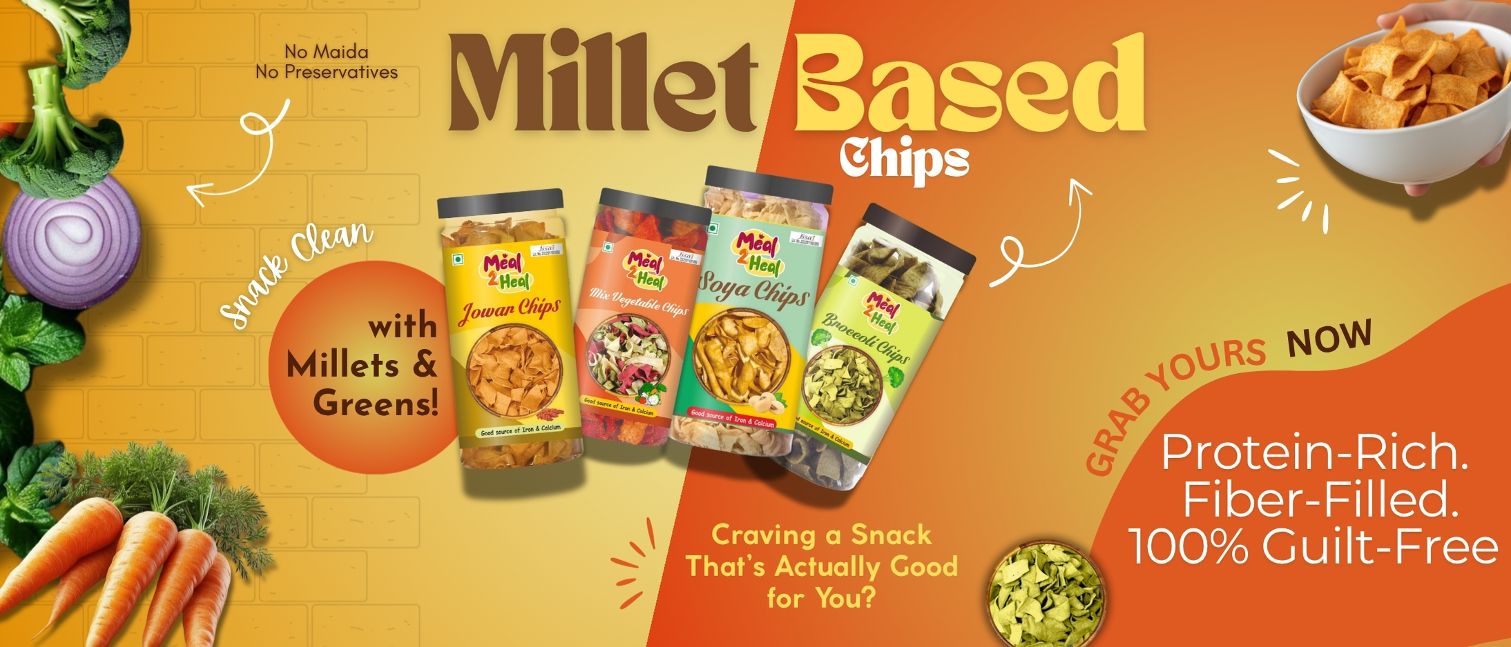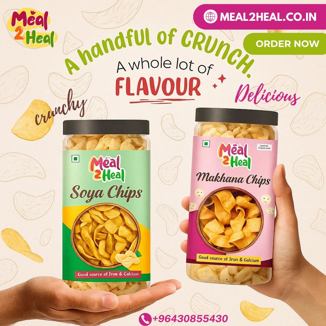 Treat yourself to the ultimate snacking experience with Meal2Heal chips! Crafted from natural ingredients and baked to perfection, our chips are free from fried oil and artificial additives. Whether you love the earthy goodness of Beetroot, the wholesome crunch of Oats, or the unique twist of Makhana-infused chips, each bite is packed with flavor and nutrition. Perfect for guilt-free snacking anytime, anywhere!