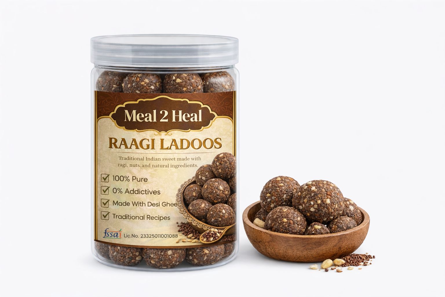 Introducing Wholesome Ragi Ladoos — a naturally nourishing Indian sweet crafted for those who want authentic taste with modern-day health benefits.